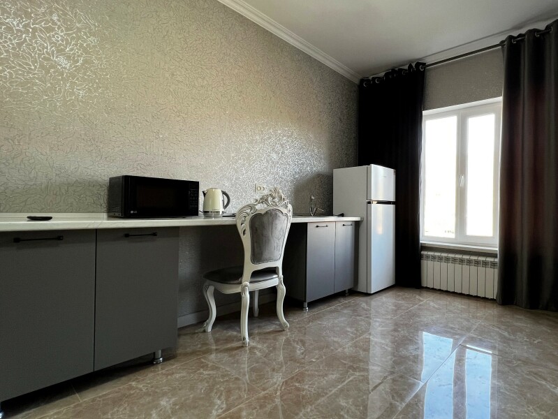 Как одноимённый высокогорный аул, эти апартаменты на втором этаже дарят ощущение чистоты, простоты и истинного покоя. Здесь нет ничего лишнего — только тёплый, честный комфорт для души и тела, уставших от больших дорог. Ваш лаконичный приют путника: Простота и покой: Уютное пространство, где удобная двуспальная кровать обещает глубокий, восстанавливающий сон под шёпот горного ветра. Тепло домашнего очага: Аккуратная кухонная зона с самым необходимым, чтобы вскипятить чайник, приготовить лёгкий завтрак и почувствовать себя как дома. Свежесть горного утра: Чистая и функциональная ванная комната, где можно освежиться, смыв пыль дальних троп. Тишина, которую видно: Вид из окна — ваше главное украшение. Спокойное созерцание древних гор наполняет силами для нового дня пути. Идеально для пары или самостоятельного путешественника, ищущих не пафос, а подлинность, душевное тепло и ту самую «тихую гавань», где можно остановиться, перевести дух и услышать себя. Забронируйте апартаменты «Тинди» — обретите свой уголок нетронутой простоты в сердце Дагестана.